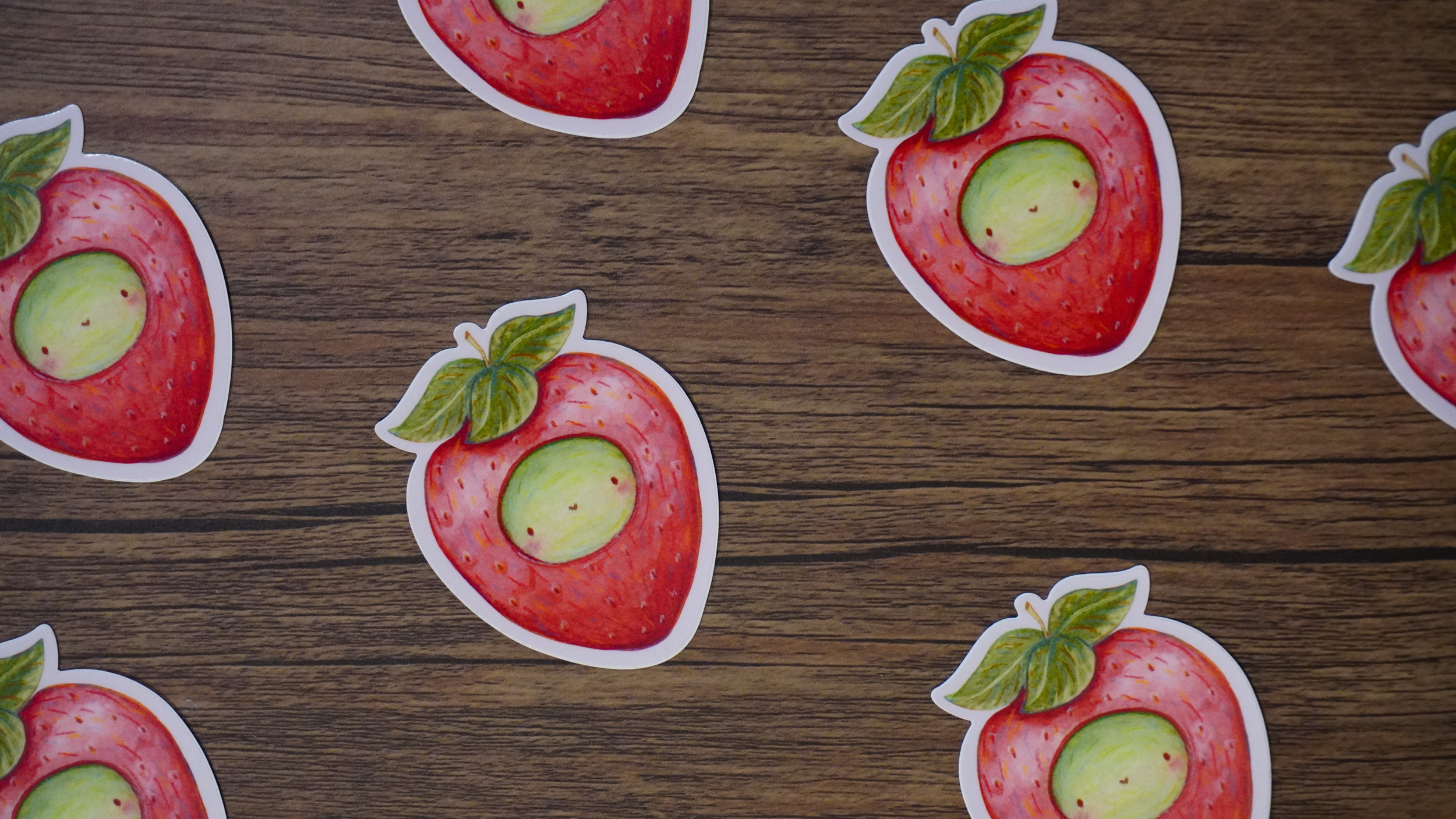 This little strawberry is a part of the Fruit Bowl Bunch Band and is excited to perform!